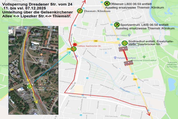 • Vollsperrung Dresdener Straße und Umleitung Linie 800
