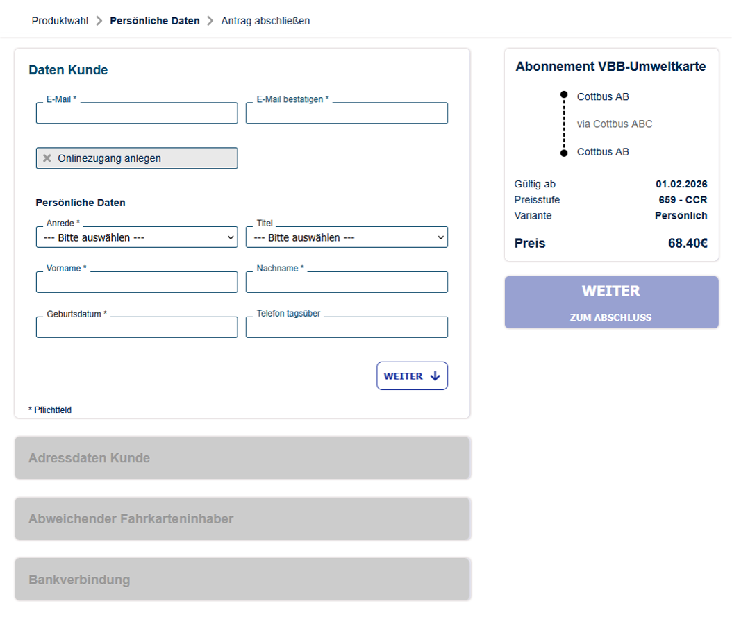 AboOnline ist das digitale Kundenportal von Cottbusverkehr und Spree-Neiße-Cottbusverkehr. Es richtet sich an alle Fahrgäste, die bereits ein Abonnement besitzen oder in Zukunft eines abschließen möchten, und bietet ihnen eine komfortable Möglichkeit, ihre Abonnements online zu verwalten, zu verlängern oder neue Abos einfach und bequem zu beantragen.