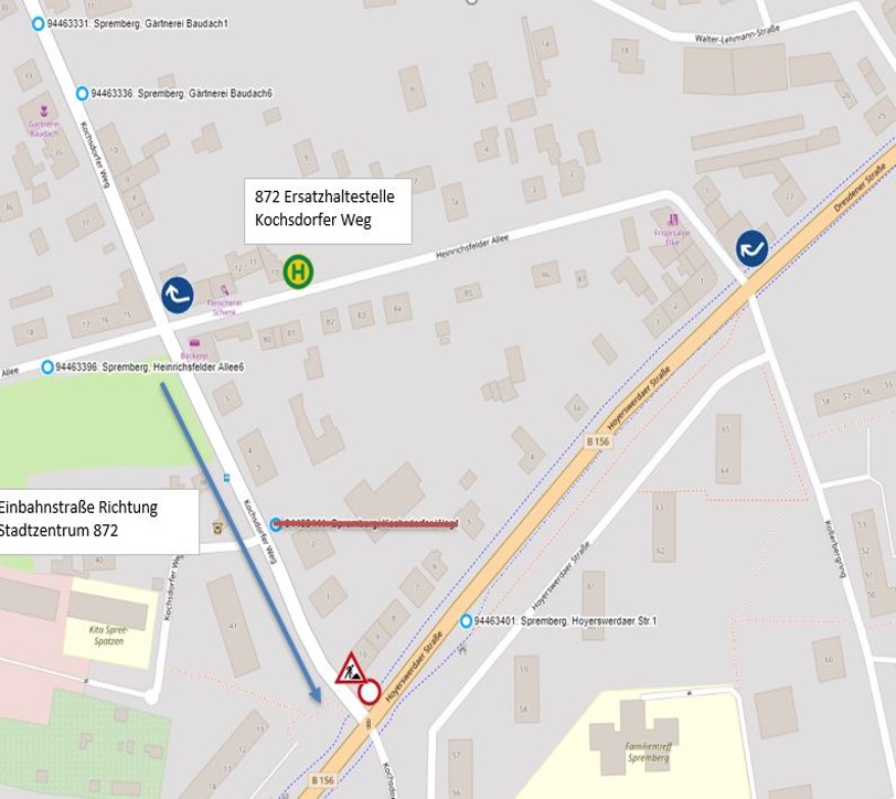Vorübergehende Umleitung Linie 872 in Spremberg